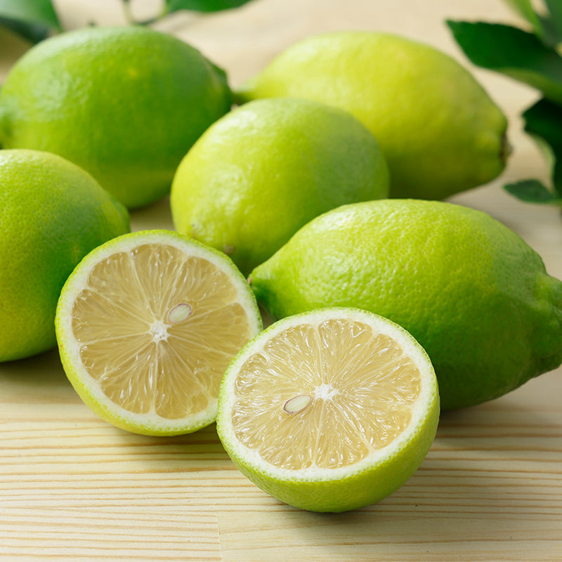 旬の始まりの10月、11月にお届けするのは、鮮烈な香りと柔らかな酸味が特長のグリーンレモンです。12月からは黄色く色付き、果汁量が多く、甘さが増すイエローレモンをお届けします。グリーンレモンは若々しい味わい、イエローレモンは芳醇なおいしさをお楽しみいただけます。冷蔵貯蔵のレモンは果実が柔らかく、熟した味が特長です。切った瞬間に、爽快感あふれる香りが立つフレッシュなおいしさをお楽しみください。