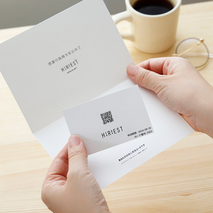 贈られた方は、ギフトカードの2次元コードから手軽に商品を選択できます。冊子がないため荷物にならず、手渡しの贈り物に最適です。さらに、ロゴマークを入れたり、メッセージや画像を表示させたりすることで、世界に一つだけのオリジナルギフトカードを作ることができます。