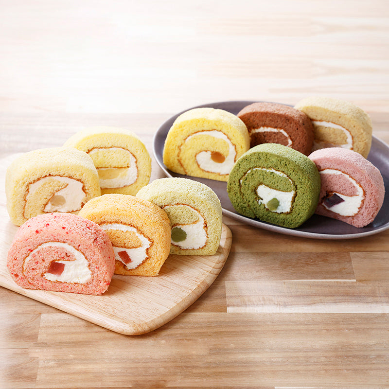 愛媛県産の農産物を贅沢に使用したロールケーキは、素材の彩りが豊かな10種のラインアップ。各種類を1個ずつの10個セットと、2個ずつの20個セットの詰め合わせをご用意しています。冷凍発送ですので、半解凍してアイスケーキとして味わうのもおすすめです。