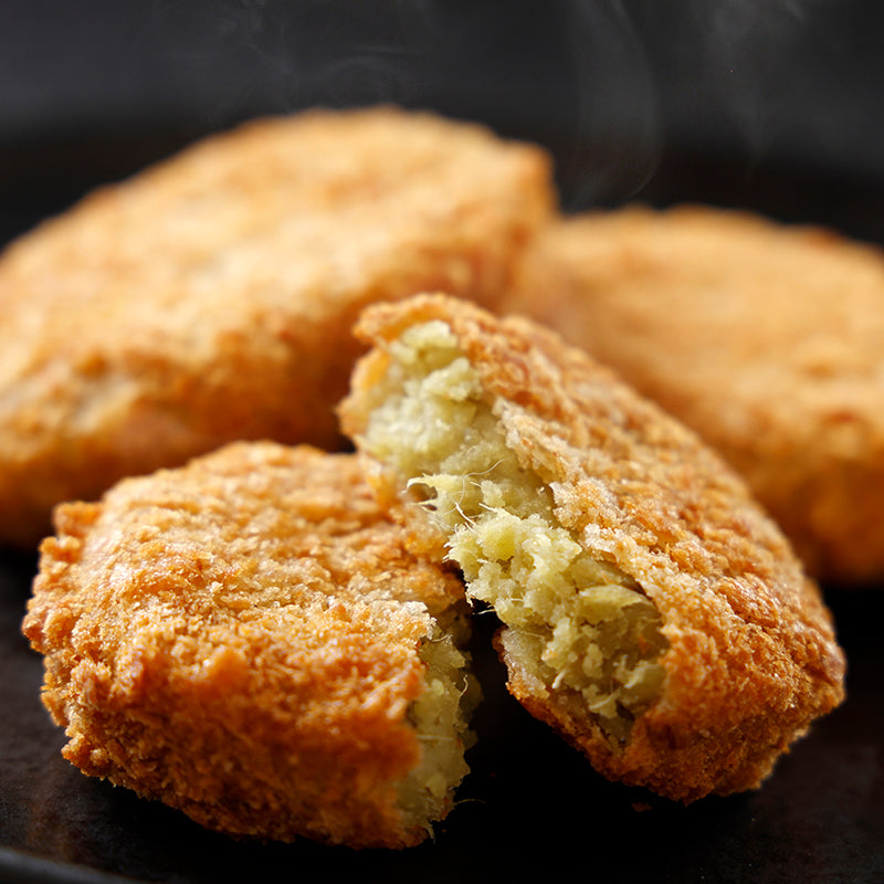 揚げたては、クリーミーなスイートポテトをフライにしたようなイメージ。少し時間を置くと、甘みが際立ち、しっとりした舌触りの焼き芋を思わせる味を楽しめ、冷めてもおいしく食べられます。おかずにもなりますが、おやつにぴったりのコロッケです。