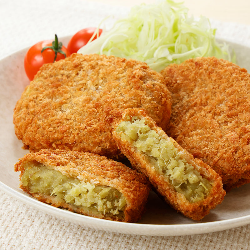揚げたては、クリーミーなスイートポテトをフライにしたようなイメージ。少し時間を置くと、甘みが際立ち、しっとりした舌触りの焼き芋を思わせる味を楽しめ、冷めてもおいしく食べられます。おかずにもなりますが、おやつにぴったりのコロッケです。