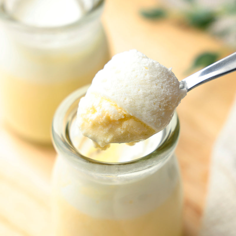 「Story of cheesecake.Ehime made」がつくる『ハーベスト』限定の「夕しぼり』瓶詰めミルクケーキ」は、ミルク風味のチーズケーキふわとろのミルクムースのWのおいしさを1つでお楽しみいただけるスイーツです。できたてを急速冷凍してお届けします。