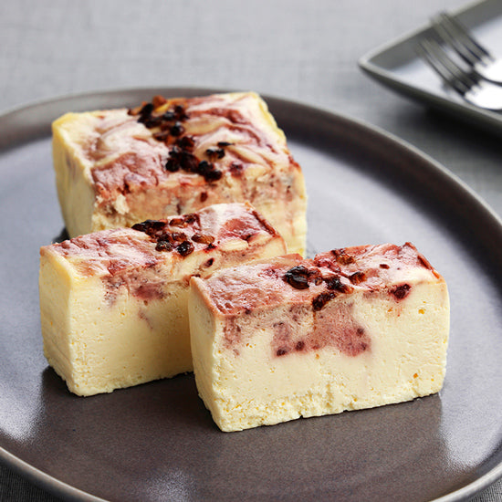 糖度の高い「紅い雫」の ピューレで マーブル模様を描いた ベイクドチーズケーキ。