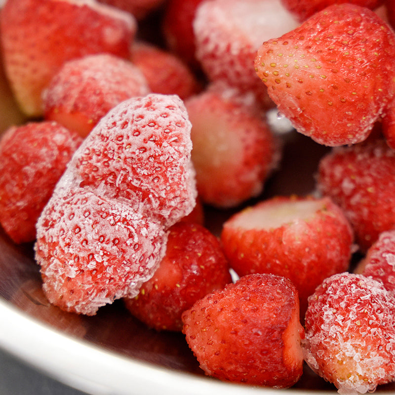 「紅い雫」は愛媛県が開発したオリジナル品種のイチゴです。糖度が高く、酸味もある濃厚な味なので“大人のいちご”と言われています。『ハーベスト』がチーズケーキのフレーバーとして選んだ「紅い雫」は、西予市宇和町のいちご農園「さかいさんちの苺」で栽培されたもの。イチゴを甘く実らせる気候ときれいな水に恵まれた環境で、完熟までじっくり大事に育てた「紅い雫」を朝摘みし、その日のうちに一個一個バラバラの状態で急速冷凍し、旬のおいしさを果実の中に閉じ込めます。